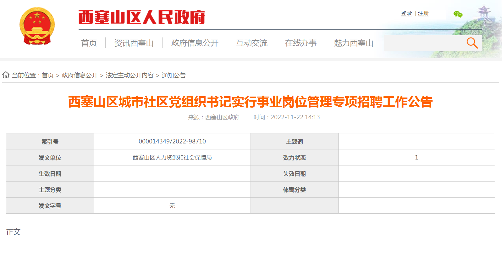原文標(biāo)題:西塞山區(qū)城市社區(qū)黨組織書記實(shí)行事業(yè)崗位管理專項(xiàng)招聘工作公告
