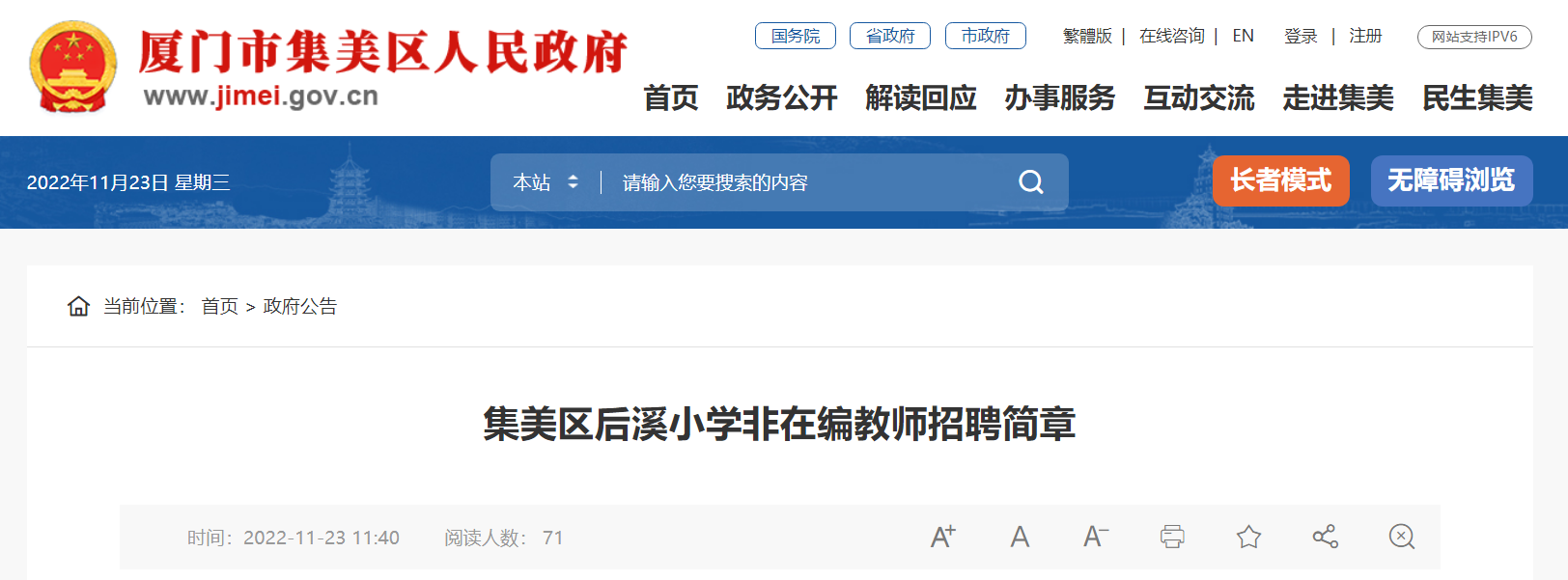 2022福建廈門集美區(qū)后溪小學(xué)非在編教師招聘2人,報(bào)名時(shí)間:2022年11月25日至2022年12月4日,現(xiàn)將招聘公告原文發(fā)布如下: