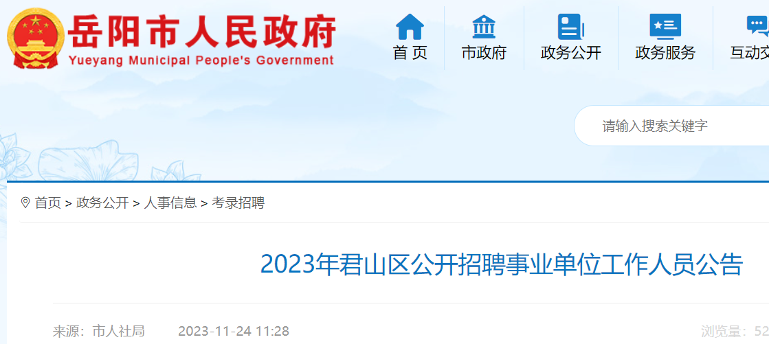 具體招聘崗位、計劃及要求詳見《2023年君山區(qū)事業(yè)單位公開招聘崗位表》(附件1)。