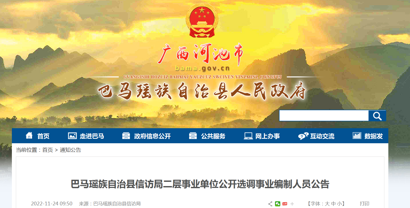 原文標(biāo)題:巴馬瑤族自治縣信訪局二層事業(yè)單位公開(kāi)選調(diào)事業(yè)編制人員公告