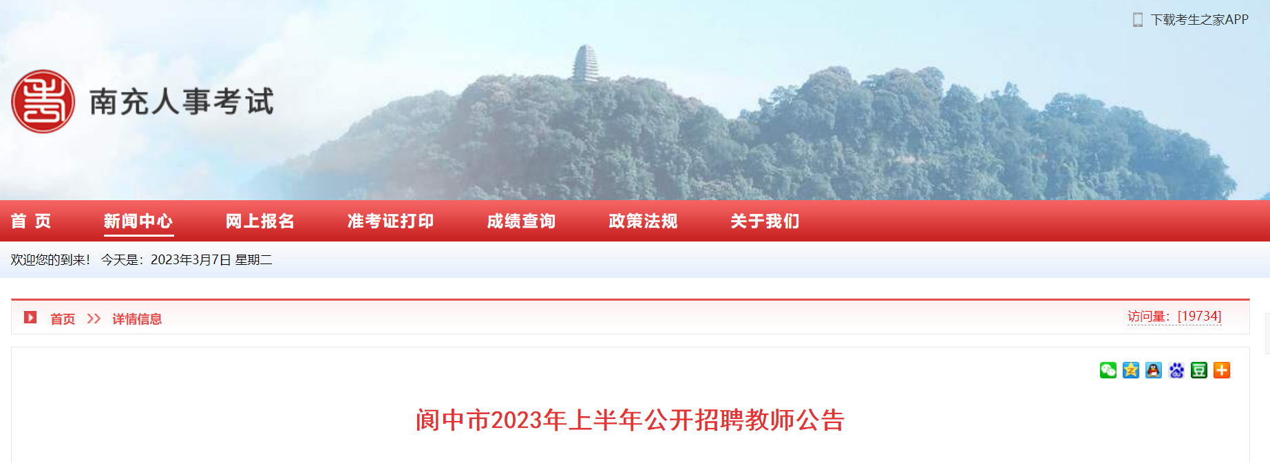 閬中市2023年上半年公開招聘教師報名入口