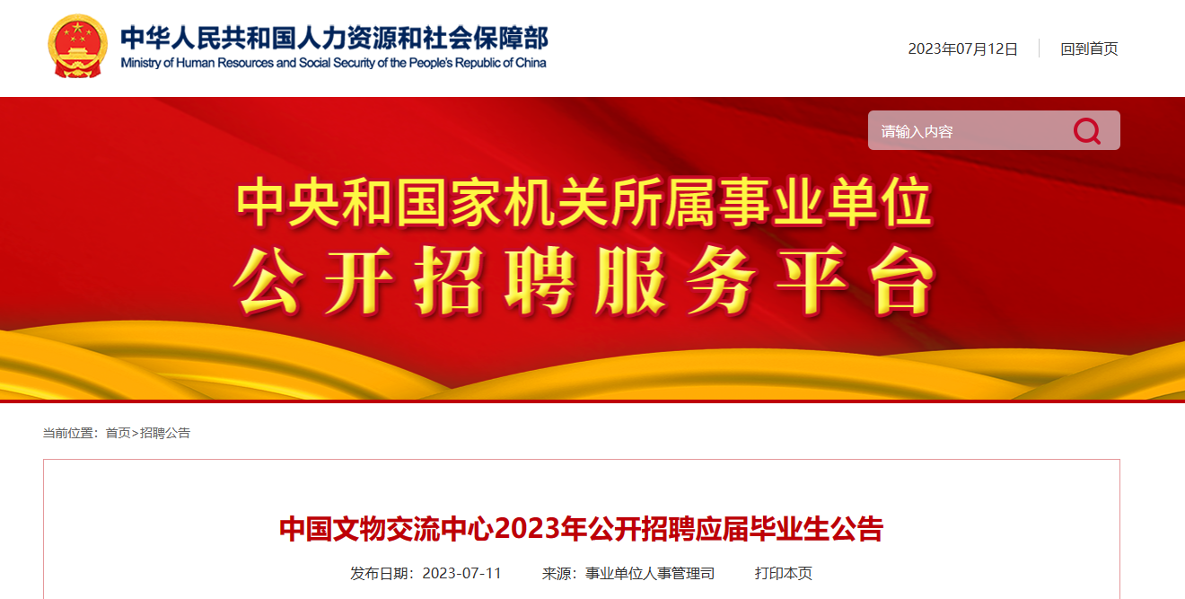 2023年北京中國文物交流中心招聘應(yīng)屆畢業(yè)生。接收報名時間截至2023年7月26日17:00。現(xiàn)將公告原文發(fā)布如下: