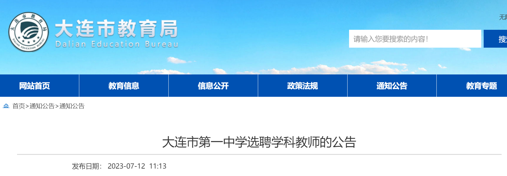 2023遼寧大連市第一中學選聘化學教師1名,報名時間:7月12日—7月18日?,F將招聘公告原文發(fā)布如下: