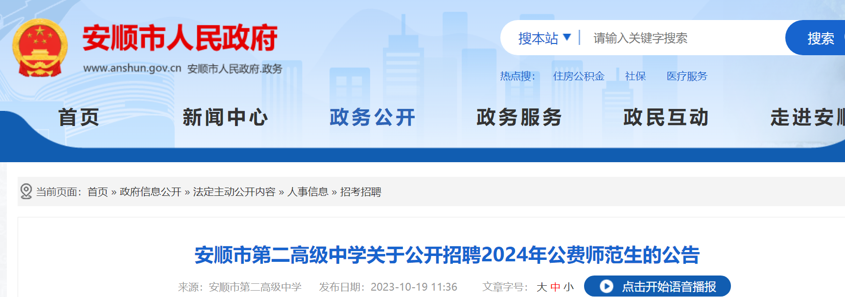 2024年貴州安順市第二高級(jí)中學(xué)招聘公費(fèi)師范生公告已發(fā)布,報(bào)名時(shí)間:2023年10月26日?,F(xiàn)將招聘公告原文發(fā)布如下: