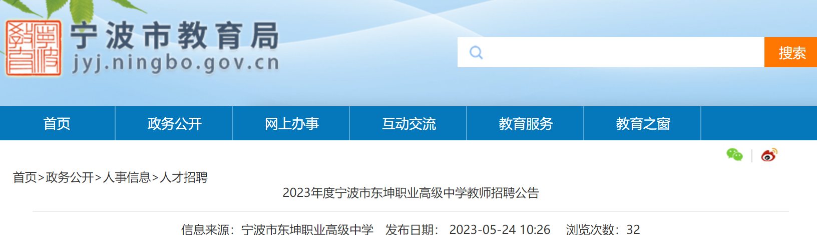 原文標(biāo)題:2023年度寧波市東坤職業(yè)高級(jí)中學(xué)教師招聘公告