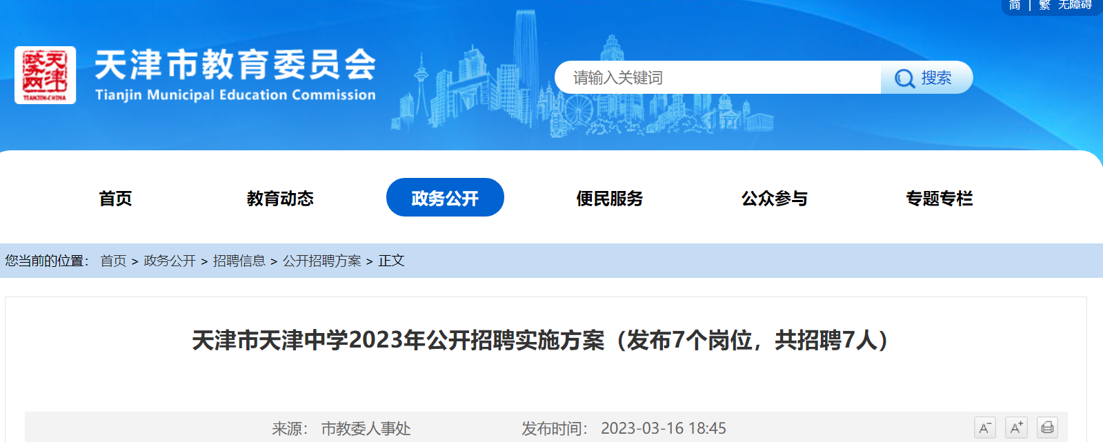 原文標(biāo)題:天津市天津中學(xué)2023年公開招聘實(shí)施方案(發(fā)布7個(gè)崗位,共招聘7人)