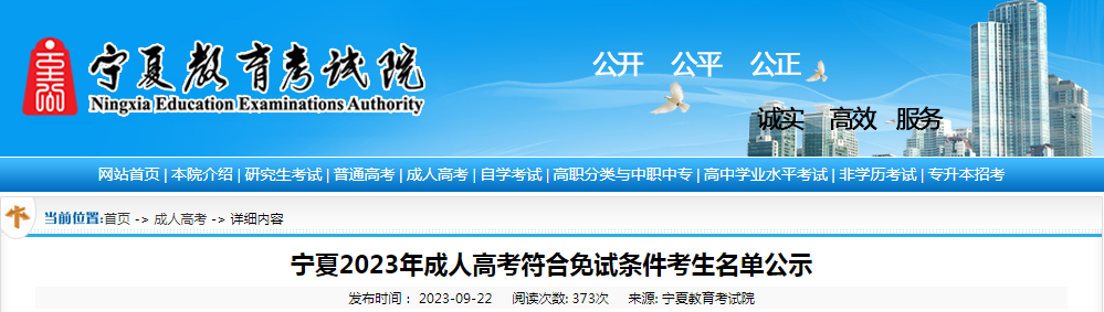 成人高考頻道從寧夏教育考試院了解到,寧夏2023年成人高考符合免試條件考生名單公示。詳情如下: