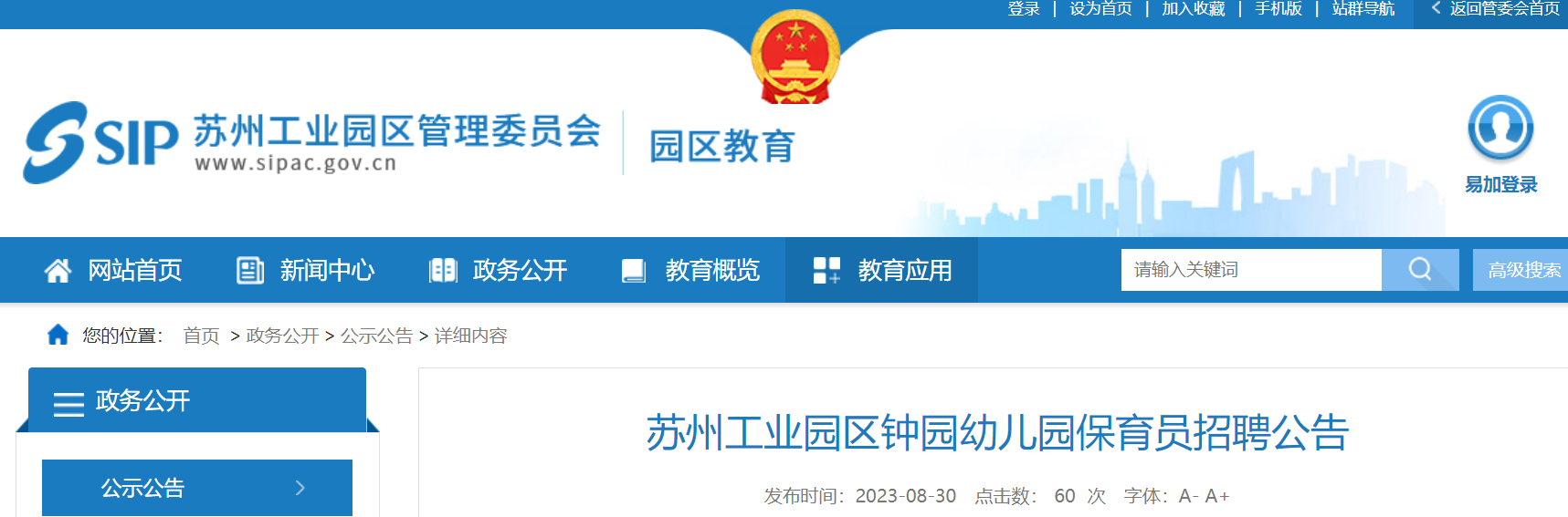 2023江蘇蘇州工業(yè)園區(qū)鐘園幼兒園招聘保育員1名,報名截止時間:2023年9月10日?,F(xiàn)將招聘公告原文發(fā)布如下:
