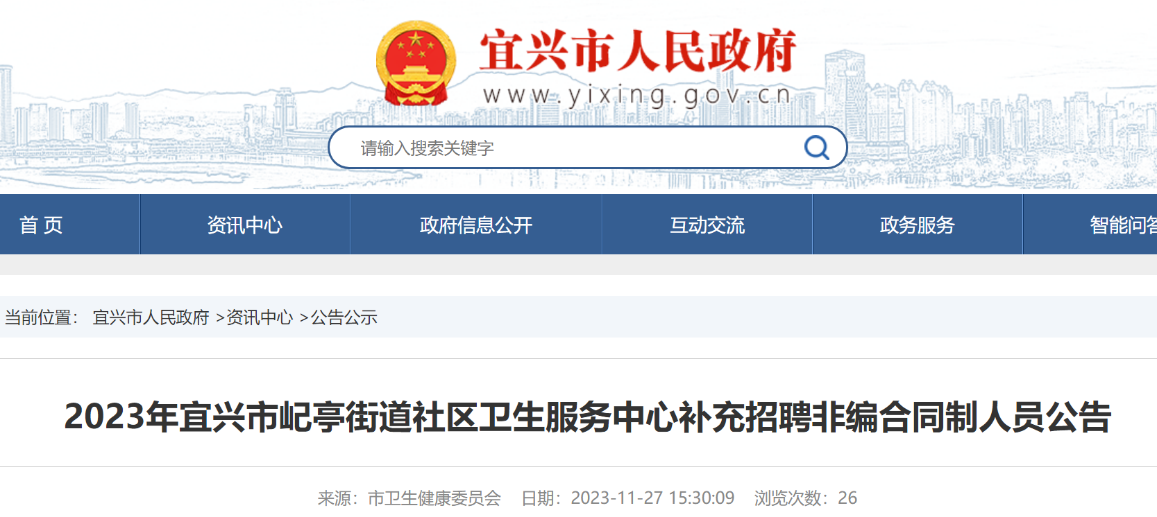 2023年江蘇無錫宜興市屺亭街道社區(qū)衛(wèi)生服務(wù)中心補充招聘非編合同制人員公告已發(fā)布,報名時間:2023年12月4日(星期一)上午8:30-11:00,下午14:00-16:00。現(xiàn)將招聘公告原文發(fā)布如下: