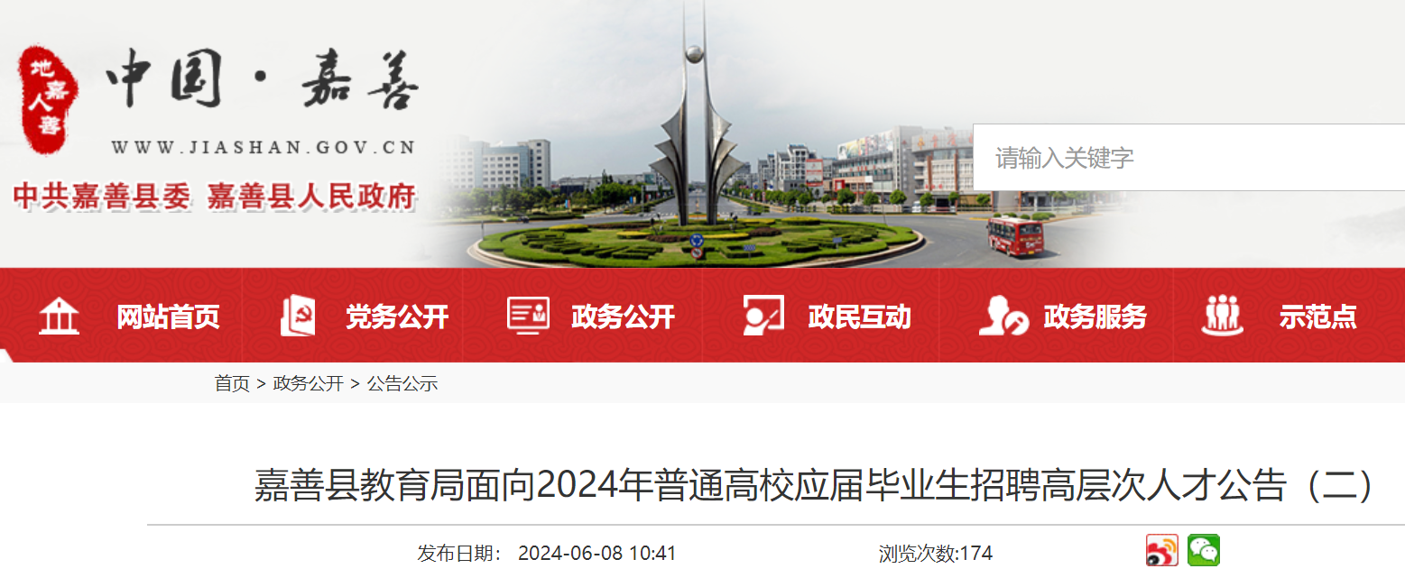 2024年浙江嘉興嘉善縣教育局面向普通高校應(yīng)屆畢業(yè)生招聘高層次人才教師公告(二)已發(fā)布,報(bào)名時(shí)間:2024年6月20日上午8:30~11:00。現(xiàn)將招聘公告原文發(fā)布如下: