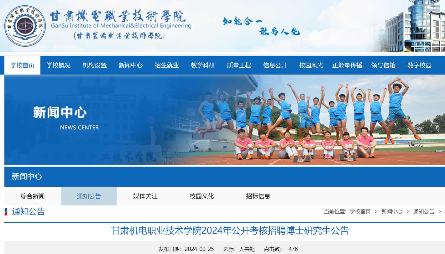 2024年甘肅機(jī)電職業(yè)技術(shù)學(xué)院公開考核招聘博士研究生公告已發(fā)布,報(bào)名時(shí)間:本公告自發(fā)布之日起長期有效?,F(xiàn)將招聘公告原文發(fā)布如下: