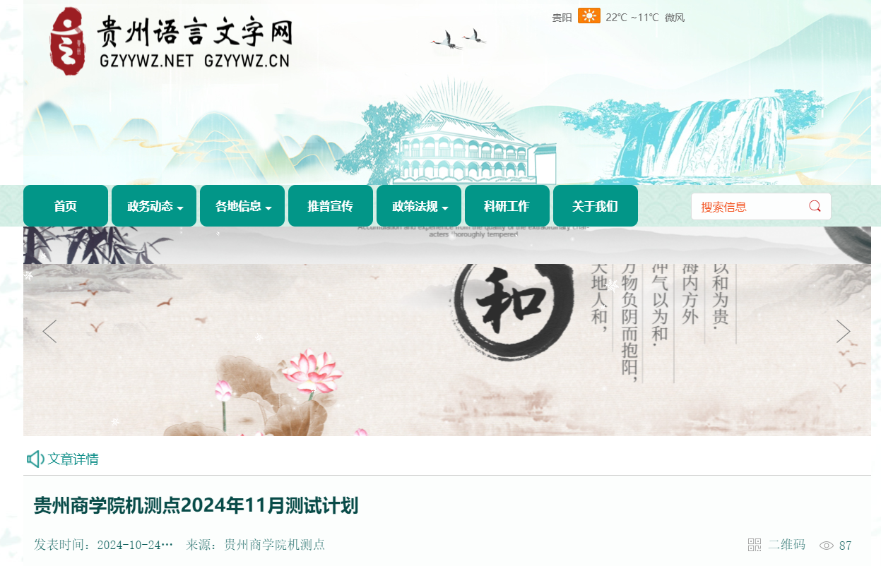 從貴州語言文字網(wǎng)獲悉,2024年11月貴州商學(xué)院普通話考試時間為11月2日和11月9日,報名時間為10月27日起,具體詳情如下: