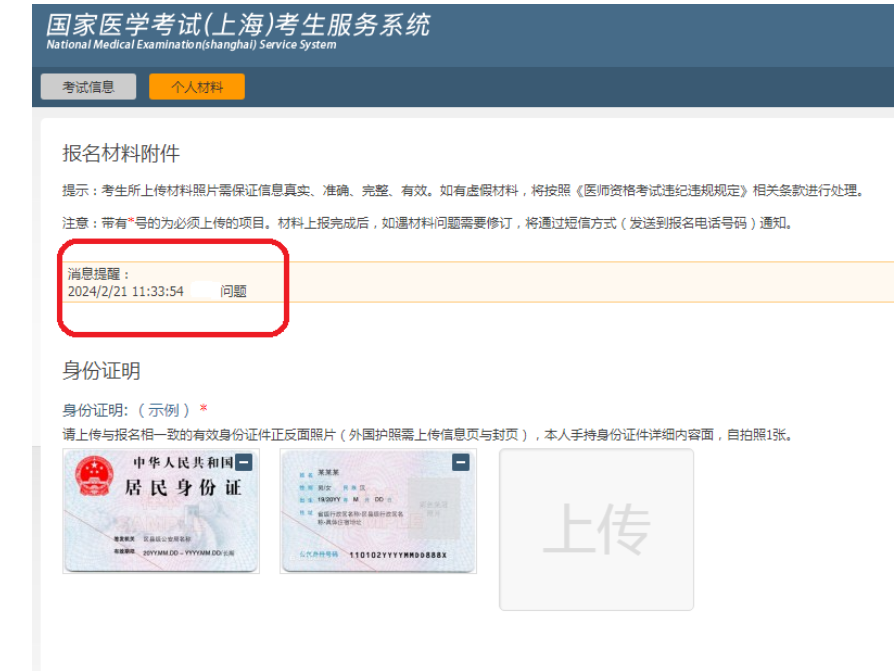 如序列號未出現(xiàn)數(shù)字的考生,可點(diǎn)擊“上傳相關(guān)材料”,查看“消息提醒”內(nèi)容,根據(jù)要求于3月5日前補(bǔ)上傳相關(guān)材料。如“消息提醒”為空,表示尚未審核,請考生耐心等待。