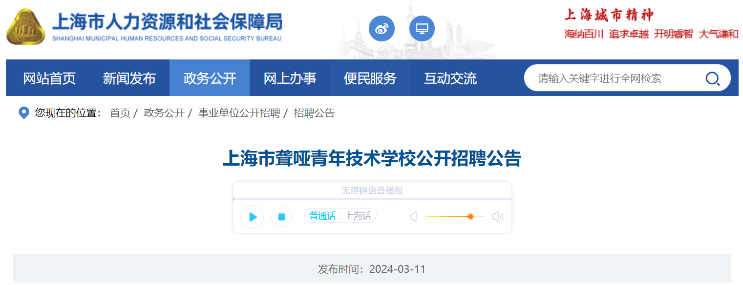 2024上海市聾啞青年技術(shù)學(xué)校公開招聘公告已發(fā)布,報(bào)名時(shí)間:即日起至2024年4月30日?,F(xiàn)將招聘公告原文發(fā)布如下: