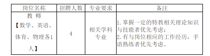 (2)熱愛特殊教育事業(yè),具有教師任職的基本素質(zhì);具有良好的品行和正常履行職責(zé)的身體條件;