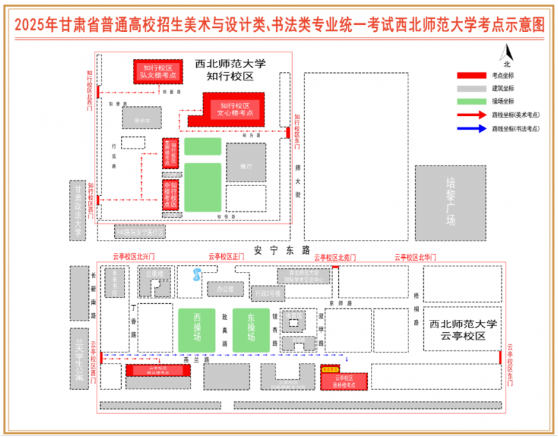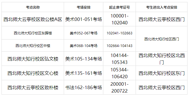 考點設(shè)在西北師范大學(xué)云亭校區(qū)(地址:蘭州市安寧區(qū)安寧東路967號)及西北師范大學(xué)知行校區(qū)(地址:蘭州市安寧區(qū)邱家灣37號)。