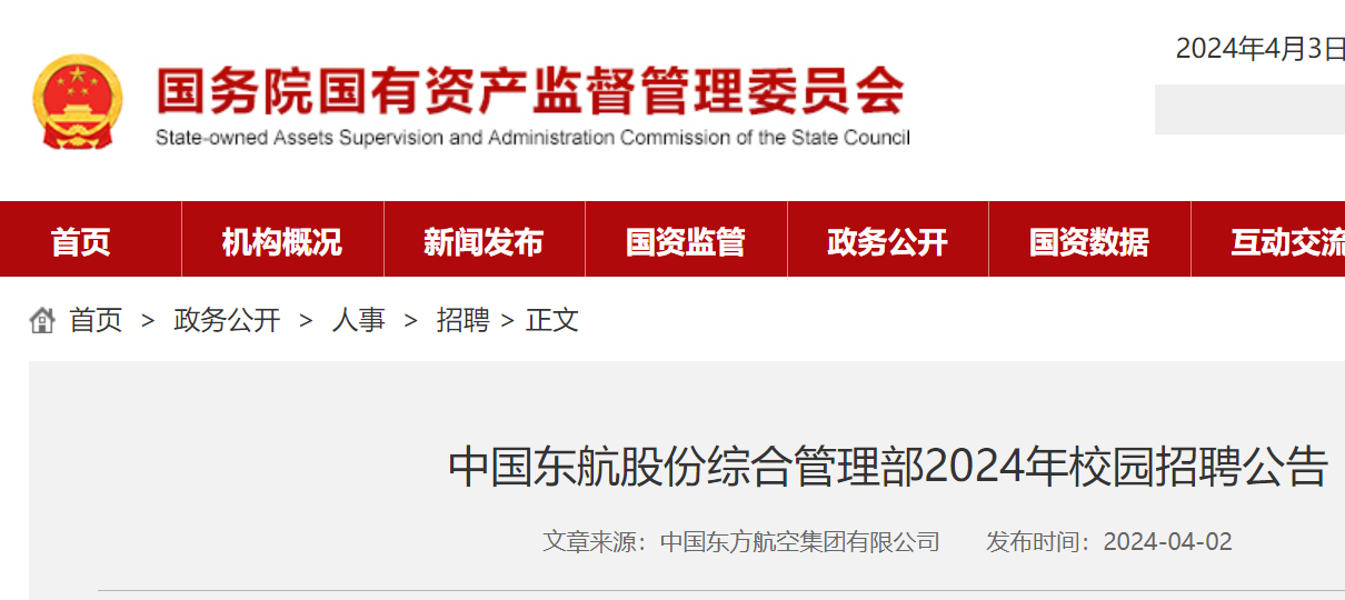2024年中國東航股份綜合管理部校園招聘公告已發(fā)布,報名時間:2024年6月30日17:00截止?,F(xiàn)將招聘公告原文發(fā)布如下: