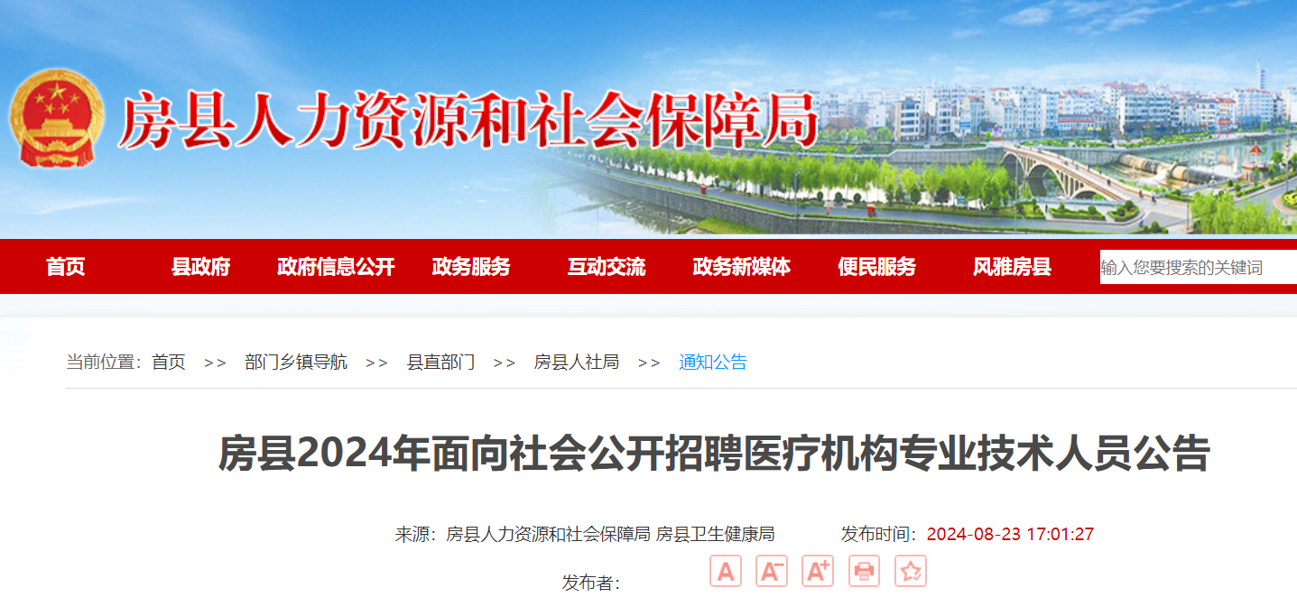 2024年湖北十堰房縣面向社會公開招聘醫(yī)療機構(gòu)專業(yè)技術(shù)人員公告已發(fā)布,報名時間:2024年9月3日8:30至9月5日17:30?,F(xiàn)將招聘公告原文發(fā)布如下: