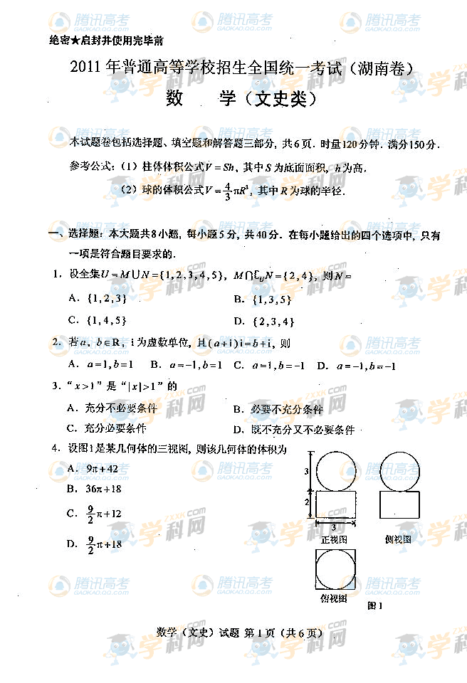 《今年高考:2011高考數(shù)學(xué)文科試題(湖南卷)》由出國(guó)留學(xué)網(wǎng)liuxue86.com編輯在高考期間特別更新,文章更新時(shí)間為:2011年06月08日 06時(shí)37分.