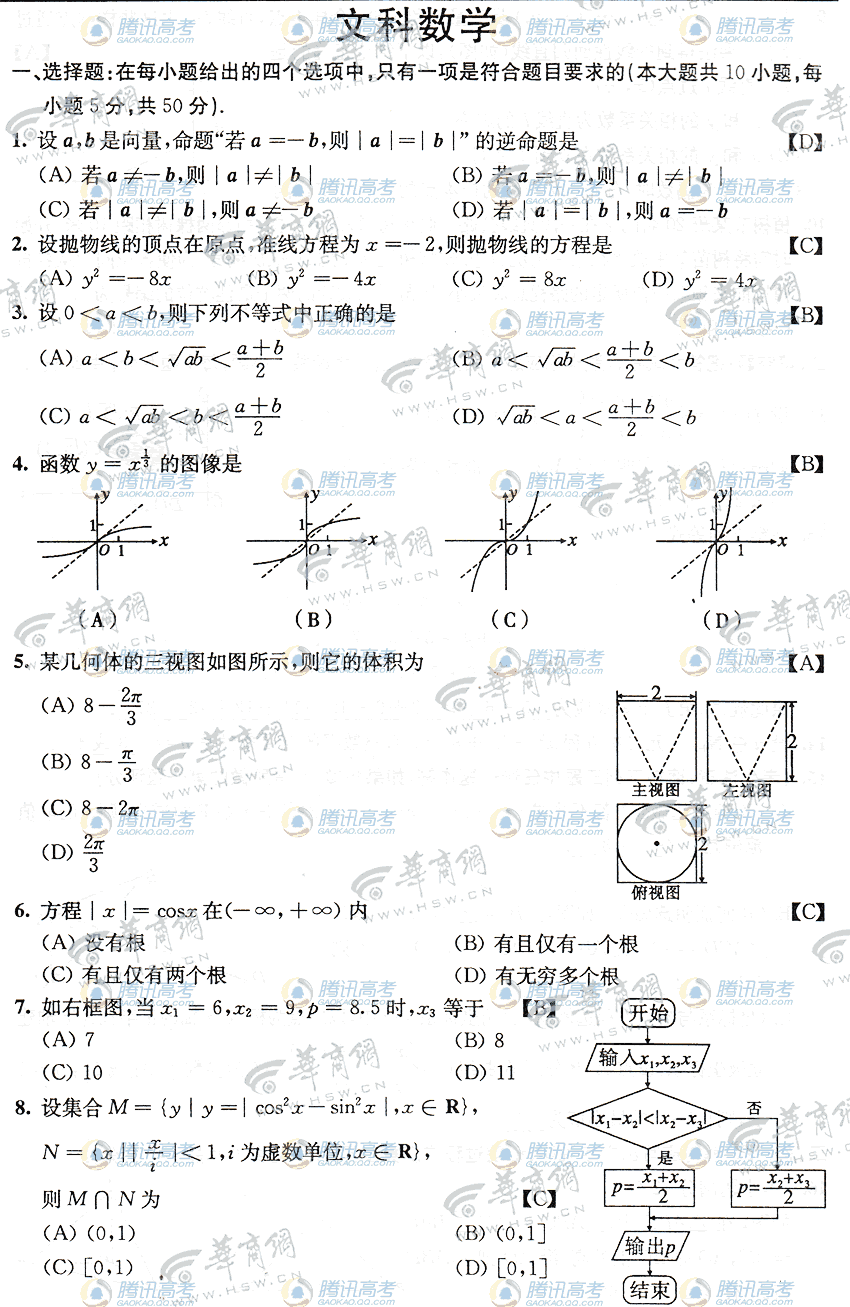 《今年高考:2011高考數(shù)學(xué)文科試題(陜西卷)》由出國留學(xué)網(wǎng)liuxue86.com編輯在高考期間特別更新,文章更新時(shí)間為:2011年06月08日 10時(shí)37分.