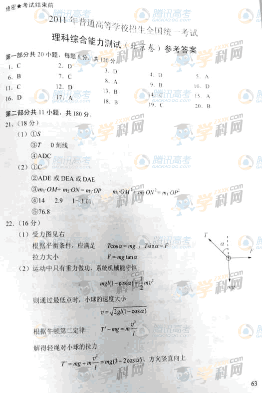 《今年高考:2011高考理綜答案(北京卷)》由出國(guó)留學(xué)網(wǎng)liuxue86.com編輯在高考期間特別更新,文章更新時(shí)間為:2011年06月10日 11時(shí)56分.