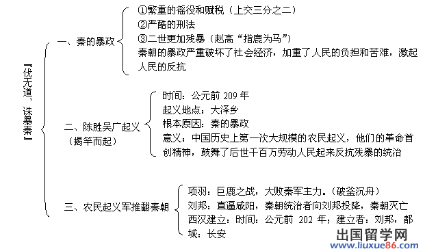 1.重點(diǎn):秦的暴政和陳勝、吳廣起義及秦的暴政與秦朝滅亡的關(guān)系