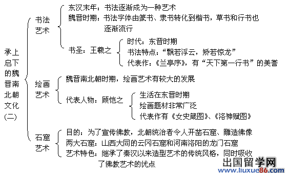 本部分在中考命題中所占比重比較小。一般以選擇題的形式出現(xiàn),通常結(jié)合圖片來命制試題。主要考查的內(nèi)容有:王羲之和《蘭亭序》,顧愷之和《女史箴圖》《洛神賦圖》,云岡石窟和龍門石窟等。
