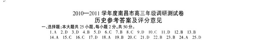 | 江西高考語文答案 | 江西高考數(shù)學(xué)答案 | 江西高考英語答案 | 江西高考理綜答案 | 江西高考文綜答案 |