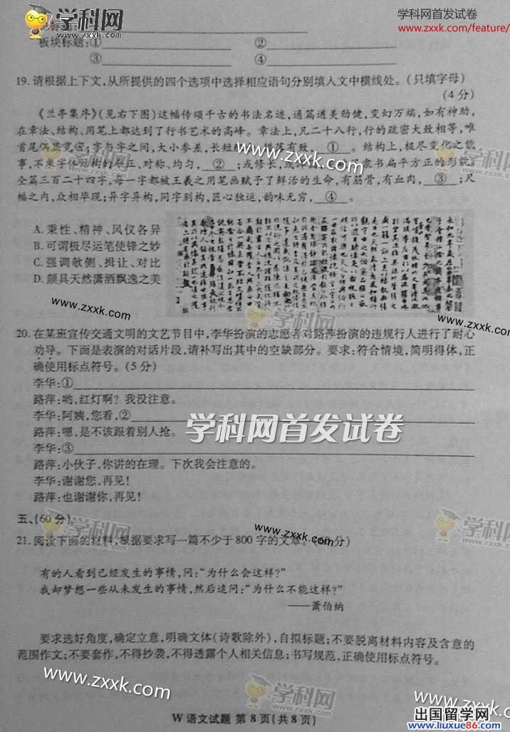 | 安徽高考語文答案 | 安徽高考數(shù)學(xué)答案 | 安徽高考英語答案 | 安徽高考理綜答案 | 安徽高考文綜答案 |