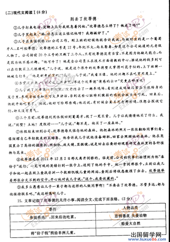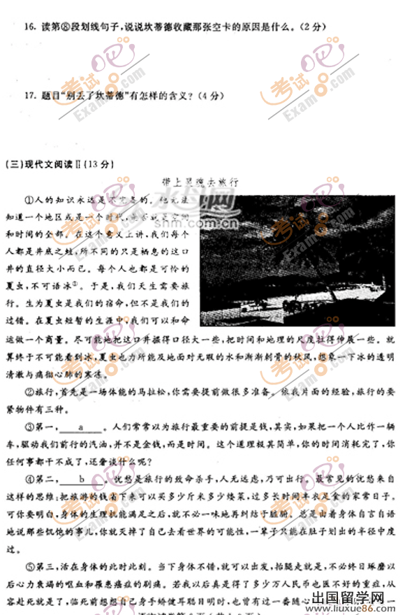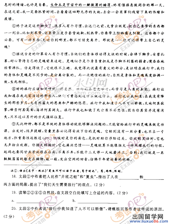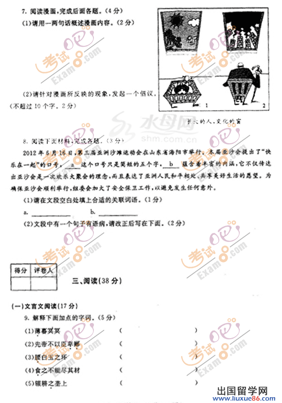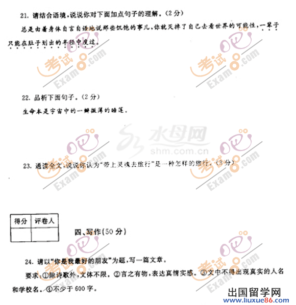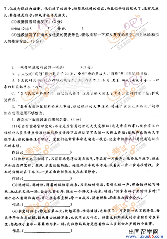 ? ? 2013中考已經(jīng)開始倒計時,各位考生的心情也是五味雜陳,出國留學(xué)網(wǎng)中考頻道會全程陪伴大家,為大家提供幫助。本頻道搜集了大量的中考試題資源,各位考生可以下載查看,做好充分的考前準(zhǔn)備,調(diào)節(jié)好心態(tài),在中考中取得優(yōu)異成績。