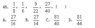 一、數(shù)字推理。給你一個(gè)數(shù)列,但其中缺少一項(xiàng),要求你仔細(xì)觀察數(shù)列的排列規(guī)律,然后從四個(gè)供選擇的選項(xiàng)中選擇你認(rèn)為最合理的一項(xiàng),來填補(bǔ)空缺項(xiàng),使之符合原數(shù)列的排列規(guī)律。