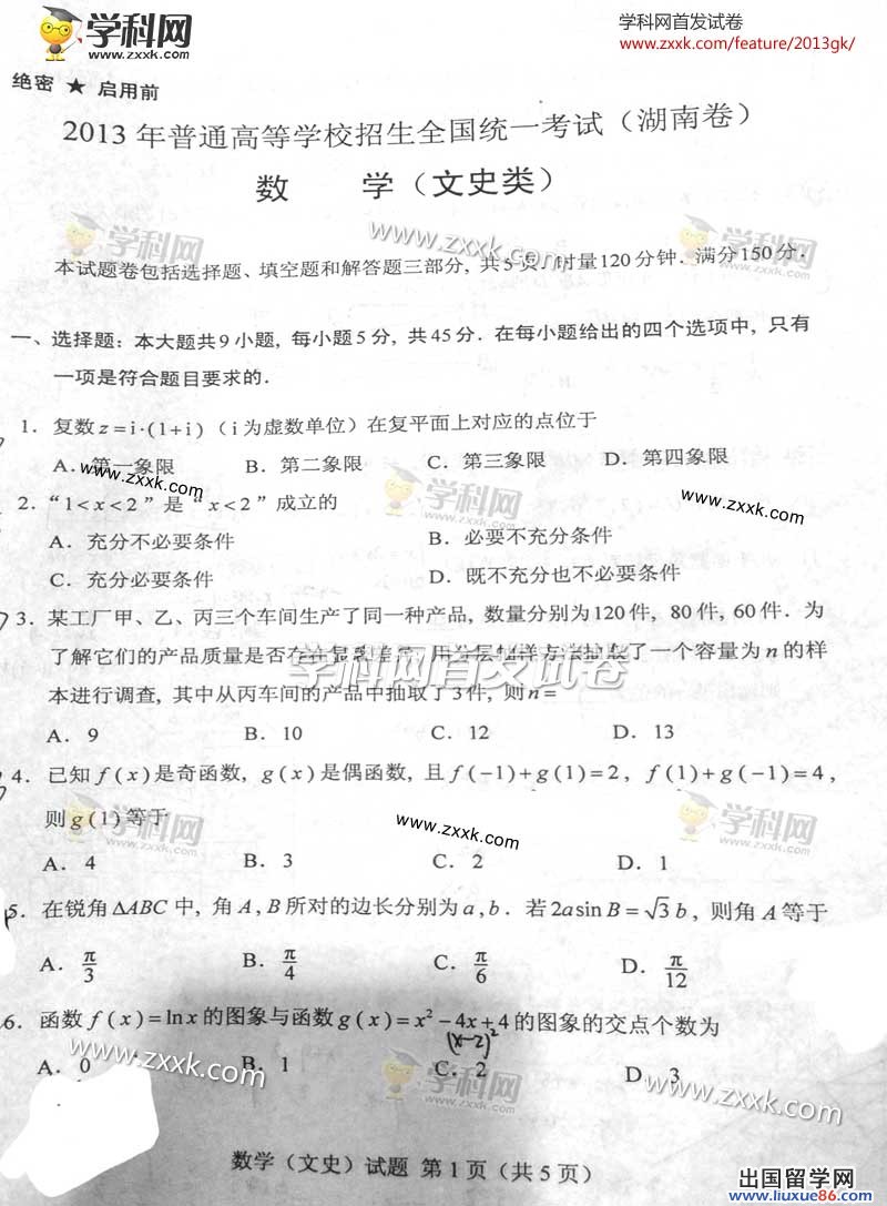 目前,湖南地區(qū)的高考真題已公布,歡迎您收藏本網(wǎng)站,湖南高考頻道首發(fā)2013湖南高考數(shù)學(xué)真題,內(nèi)容會在此列表頁頭條顯示,希望為你解開你考試后的心結(jié)。一旦高考真題及答案發(fā)布,將在此表頁的頭條顯示,如果您需要查找的真題及答案沒有顯示,請按crtl+F5進行刷新。