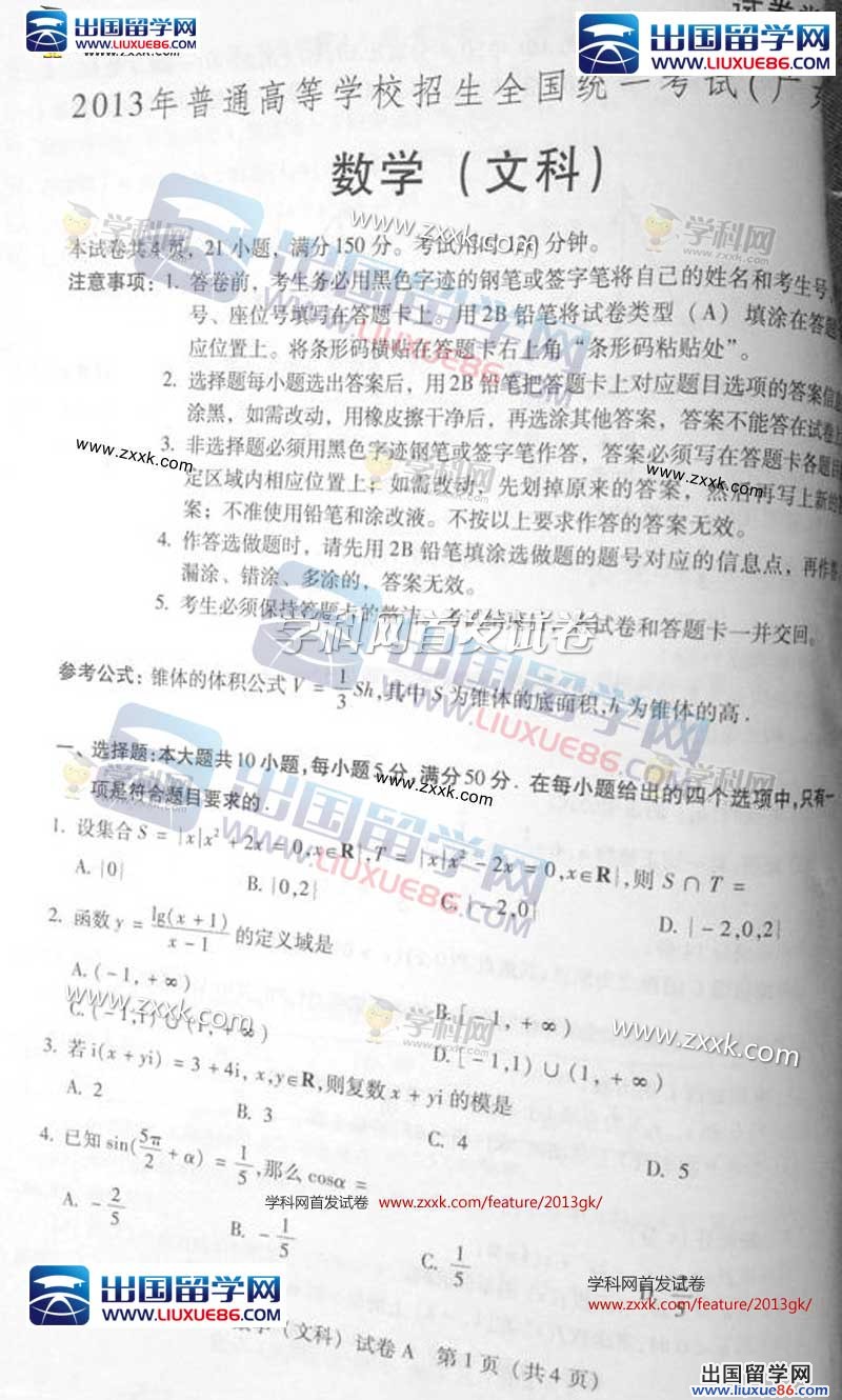 2013年廣東高考(文科)數(shù)學(xué)真題