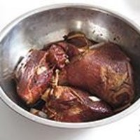 1. 牛鍵子洗凈、去除表面多余網(wǎng)膜,切成10厘米寬的大塊。在切好的牛肉表面用竹簽或金屬簽扎眼,再將姜絲、蔥段、蒜瓣、料酒、黃醬/甜面醬和少許老抽、生抽、十三香混和其中。