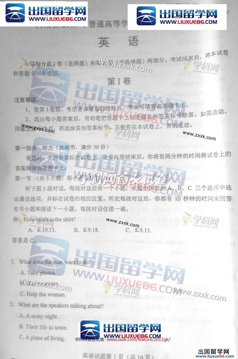 備受關(guān)注的高考已經(jīng)結(jié)束,2013河北高考英語也已經(jīng)揭開神秘的面紗,高考網(wǎng)會在第一時間將最新出爐的2013河北高考英語真題呈現(xiàn)出來,讓大家一睹為快。2013河北高考真題及答案發(fā)布將在此表頁的頭條顯示,請按crtl+F5進行刷新。