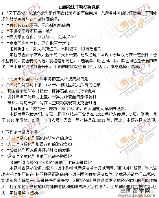 2012年山西政法干警考試行測真題,政法干警考試真題答案。