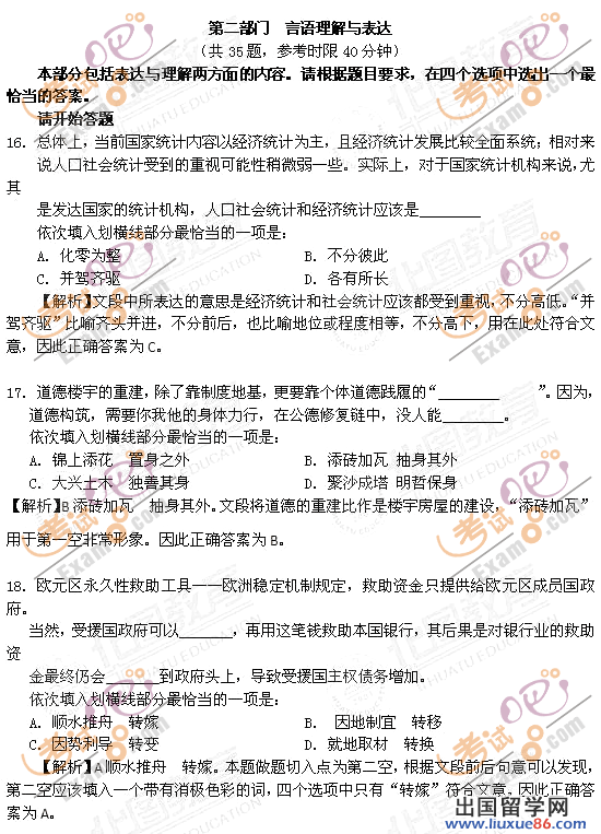 | 行測真題 | 行測答案 | 申論真題 | 申論答案 | 面試專題 |