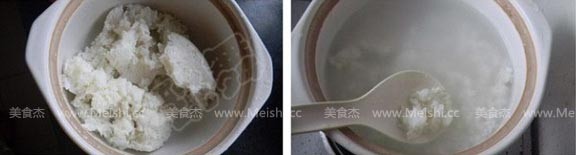 1、剩米飯放入煲內(nèi)加入適量的水(大約1:8比例,具體還要看米飯的吸水性和自己希望的粥的稠稀程度),然后滴幾滴的色拉油(放點(diǎn)油可以讓粥的口感更滑嫩)