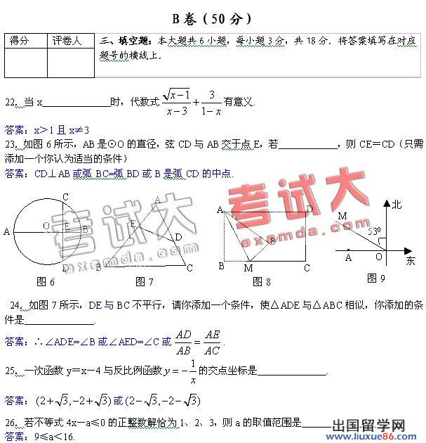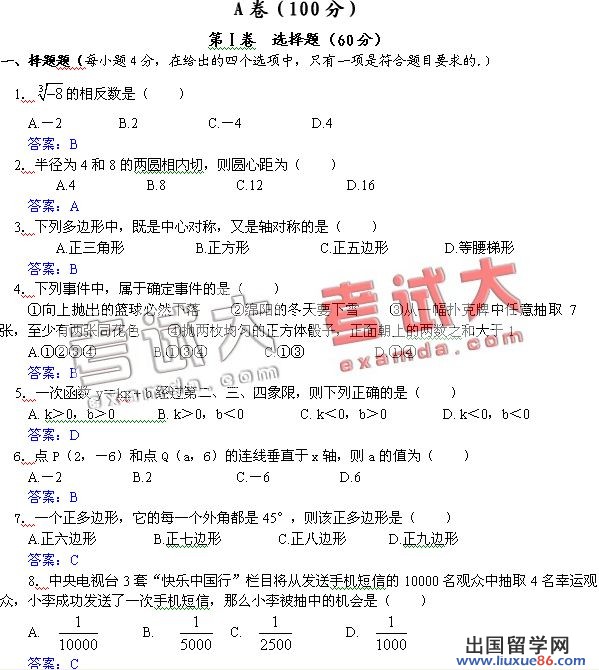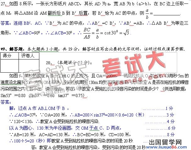 ? 中考數(shù)學(xué)是一塊又愛又恨的科目。只要掌握其中的邏輯運(yùn)算規(guī)則,那試卷上的題目都如浮云一般簡(jiǎn)單易做。反之則頭昏眼花,難吃苦味····出國(guó)留學(xué)網(wǎng)在這里為大家提供歷年的中考數(shù)學(xué)復(fù)習(xí)資料。教會(huì)大家藐視中考數(shù)學(xué)如浮云。