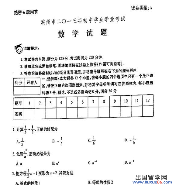 出國留學(xué)網(wǎng)中考頻道為您提供 濱州2013中考數(shù)學(xué)真題及答案詳解,為您2014年中考復(fù)習(xí)提供借鑒參考,祝您2014年中考順利!