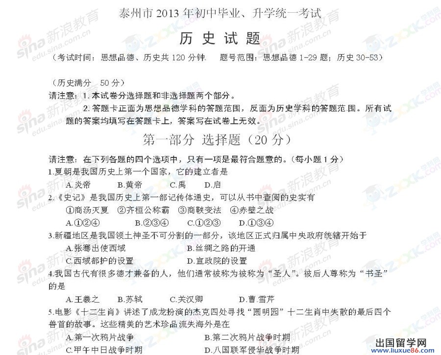 下面是出國留學網為大家整理的2013江蘇中考試題,更多中考資訊,歡迎收藏本網站。(ctrl即可收藏)