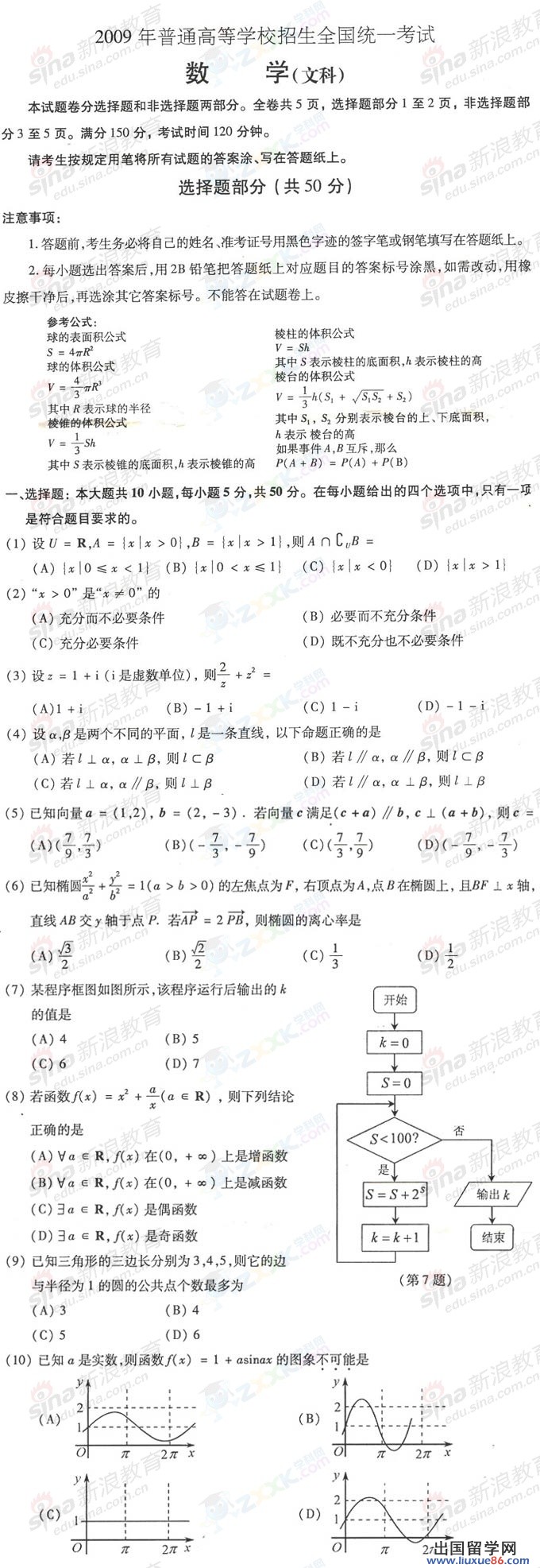 為方便廣大考生進(jìn)行高考備考復(fù)習(xí),出國(guó)留學(xué)網(wǎng)高考頻道特為您搜集整理了浙江高考數(shù)學(xué)文真題試卷2009,希望對(duì)您2014年高考有所借鑒!
