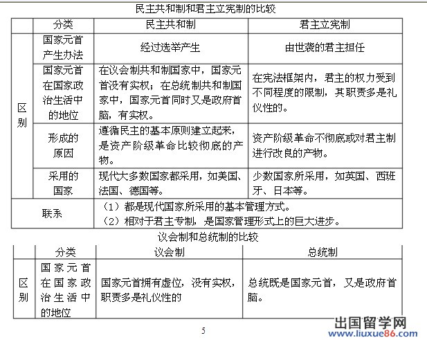 從國家權(quán)力機(jī)關(guān)和國家元首的產(chǎn)生方式及其職權(quán)范圍來看,現(xiàn)代國家大致有民主共和制和君主立憲制兩種形式。它們之間的最主要區(qū)別是國家元首的產(chǎn)生方式、任期不同。