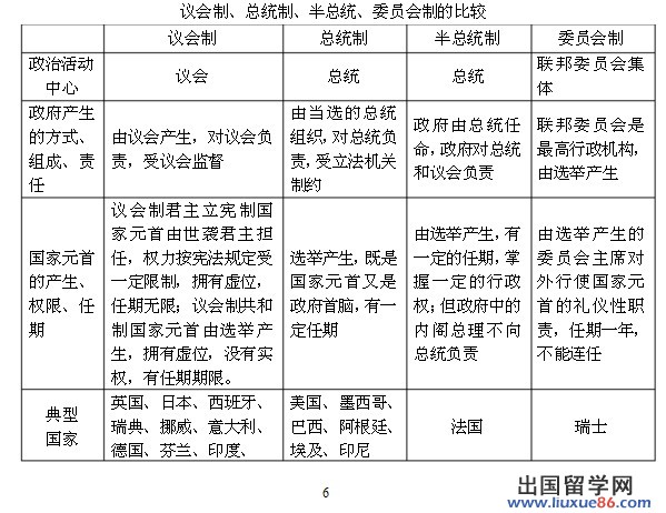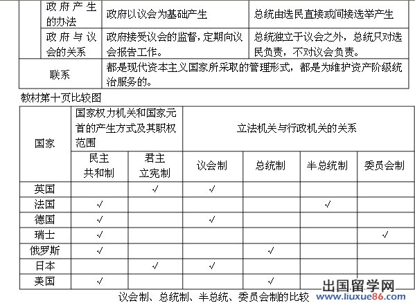 (一)從立法機(jī)關(guān)與行政機(jī)關(guān)的關(guān)系來看,現(xiàn)代資本主義國家可以分為四種形式,即議會制國家、總統(tǒng)制國家、半總統(tǒng)制國家和委員會制國家。大多數(shù)國家實行議會制或總統(tǒng)制,只有少數(shù)國家實行半總統(tǒng)制或委員會制。