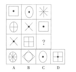 2、從所給的四個(gè)選項(xiàng)中,選擇最合適的一個(gè)填入問(wèn)號(hào)處,使之呈現(xiàn)規(guī)律性: