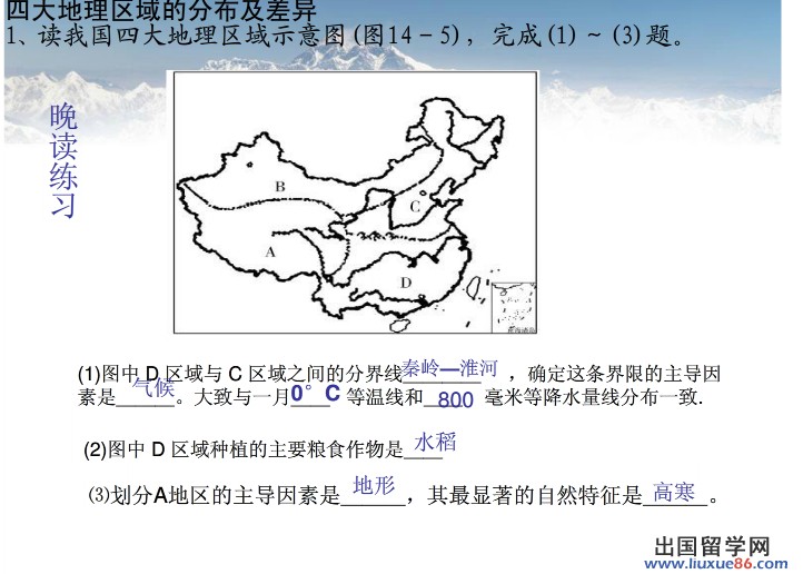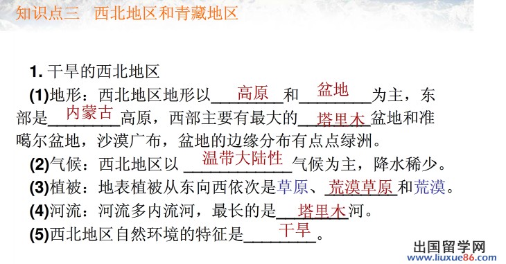 同學(xué)們復(fù)習(xí)中考地理《西北地區(qū)和青藏地區(qū)》時(shí)要注意幾點(diǎn):1、.明確青藏地區(qū)的位置和范圍,分析本區(qū)“高”“寒”的自然地理特征及對(duì)其他地理特征形成的影響。2、明確青藏地區(qū)的分布及我國(guó)主要的牧區(qū)。更多有關(guān)2014中考地理的信息可登錄出國(guó)留學(xué)網(wǎng)地理頻道,歡迎收藏本站(CTRL+D即可收藏)!