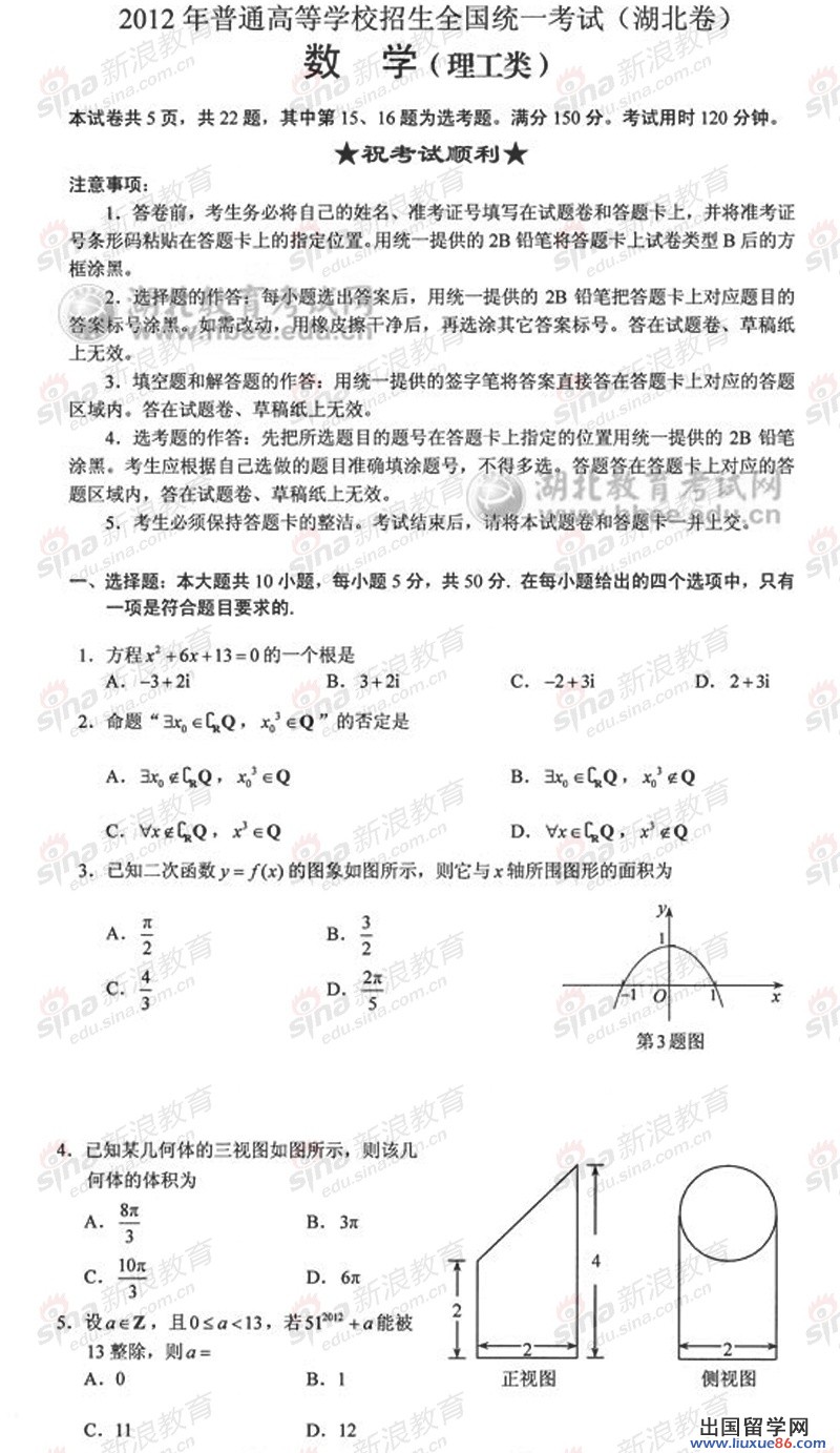 查看歷年的高考真題對于2014年高考生來說是比較好的方式,能較好的把握住2014年高考命題的思路和方向,也能檢驗一下自己對于知識的掌握程度。出國留學(xué)網(wǎng)高考頻道特為您提供了湖北B高考理科數(shù)學(xué)試題2012,希望祝您打好2014年高考戰(zhàn)!