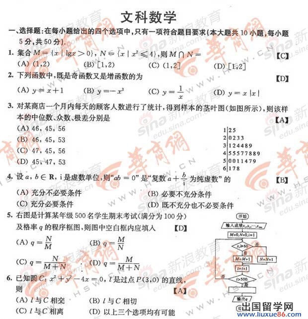 出國留學(xué)網(wǎng)高考頻道有海量的2013年高考真題,更會(huì)在2014年第一時(shí)間為您提供最新的高考真題。以下陜西高考文科數(shù)學(xué)試題2012希望對您考試練習(xí)有所幫助!祝您2014年高考順利奪魁!