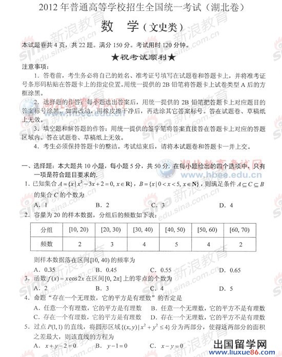 為2014年高考生備考復(fù)習提供幫助,出國留學網(wǎng)高考頻道特為您搜集整理了湖北A高考文科數(shù)學試題2012,希望對您2014年高考有所幫助!更多資訊請收藏本站(ctrl+D即可收藏)!