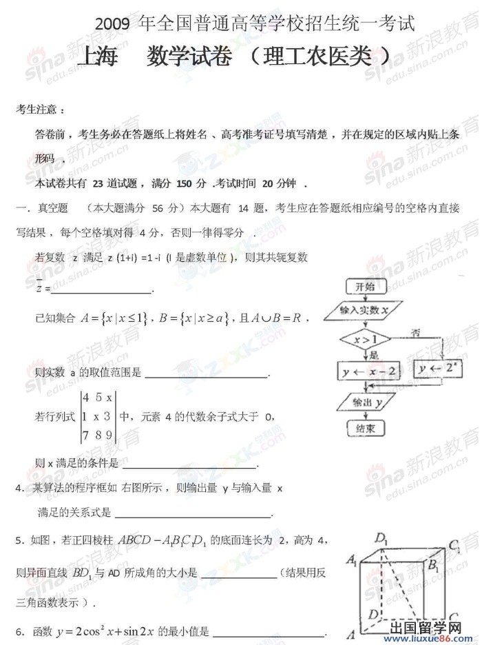 以下是出國(guó)留學(xué)網(wǎng)高考頻道為您提供的上海高考數(shù)學(xué)理試題2009,希望對(duì)您2014年高考有所幫助!